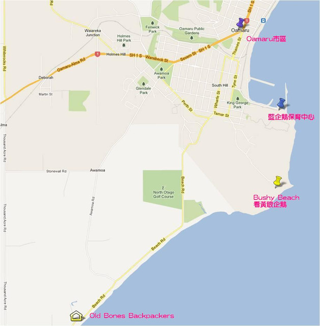 在Oamaru的住宿是Old Bones Backpackers(老骨頭)