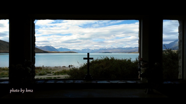 另一張也常出現的畫面,就是教堂內祭壇的湖景