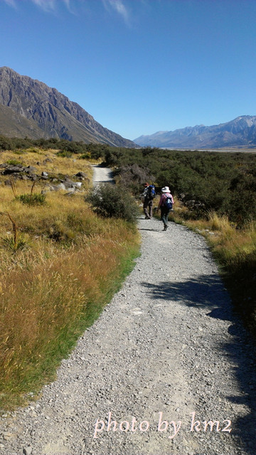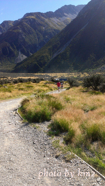 Mt. Cook 有很多條健行步道,沿途風光明媚可以觀看庫克群山,終點可達冰河湖